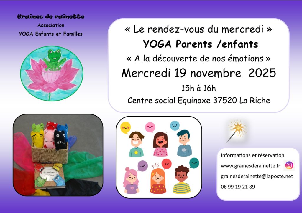 • Rendez-vous yoga parents enfants du mercredi , mercredi 19 novembre 2025 sur les émotions de 15h à 16h au Centre social Equinoxe à la Riche